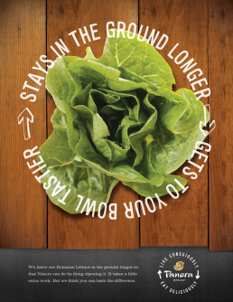 Not to be be confused with baguettes (ahem), this pitch-winning concept celebrates the hard choices Panera must make to bring healthy food forward in the marketplace. “Live Consciously Eat Deliciously,” reflects the interconnected decisions required to create a healthy menu at a QSR. When one good decision leads to another, good eating become mutually reinforcing!